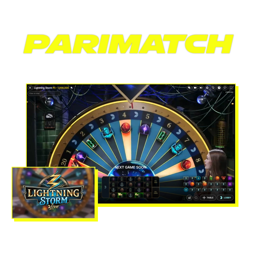 Our live casino offers a game in which bonus rounds occur very frequently: Parimatch Lightning Storm. Place your bets on the sectors of the wheel of fortune, and when it spins, you will receive as many as 5 bonus games. Place bets ranging from INR 10 to INR 18,000; multiple bets are available. For each new customer, we give a welcome bonus of +100% on deposits up to INR 100,000.